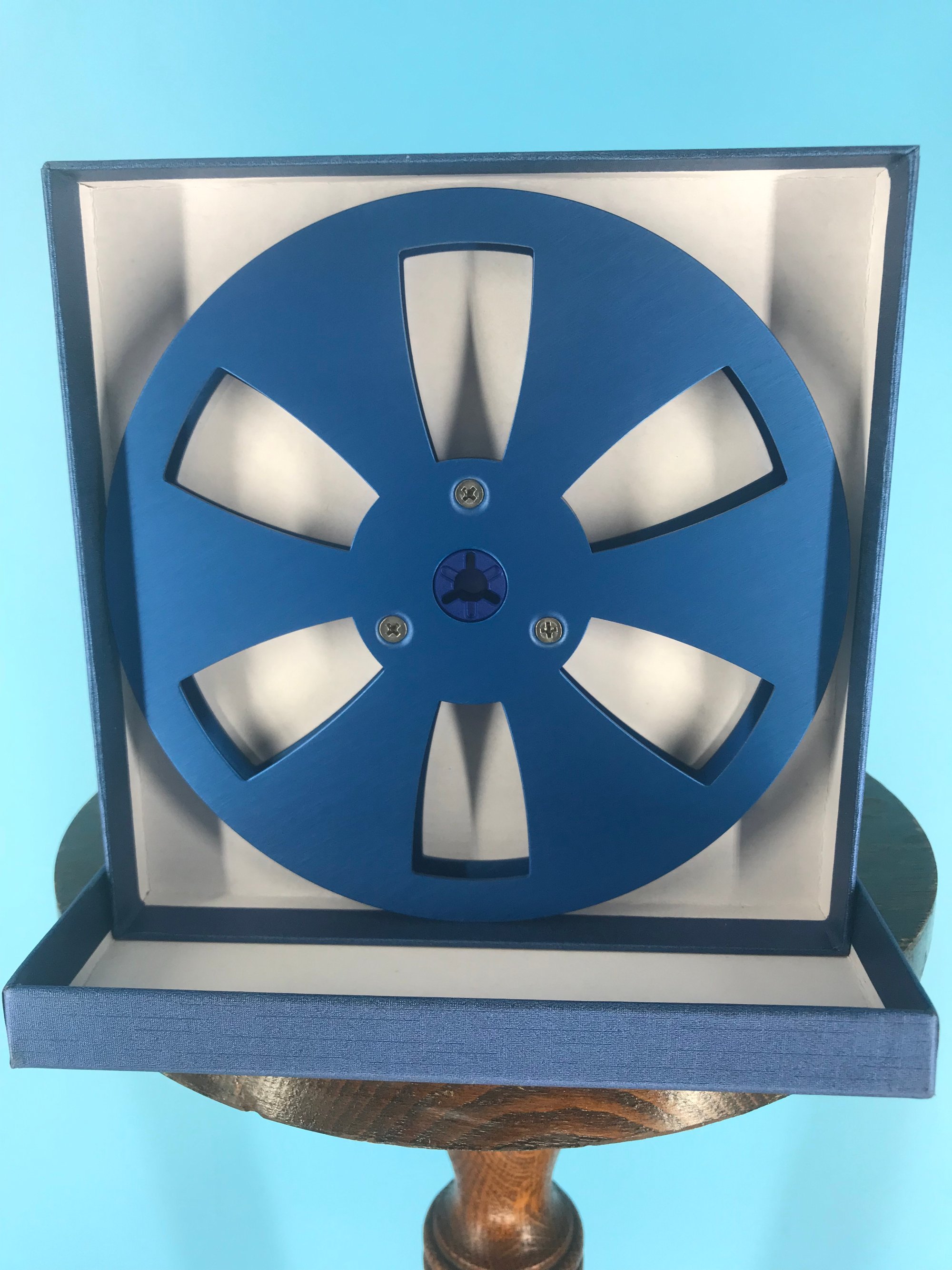 Burlington Recording 1/4" x 7" Heavy Duty BLUE Trident Metal Reel in Silver Box - 6 Windage Holes